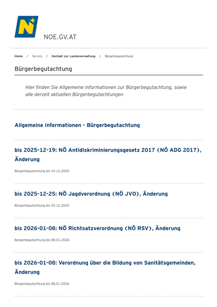 • aktuelle Bürgerbegutachtungen