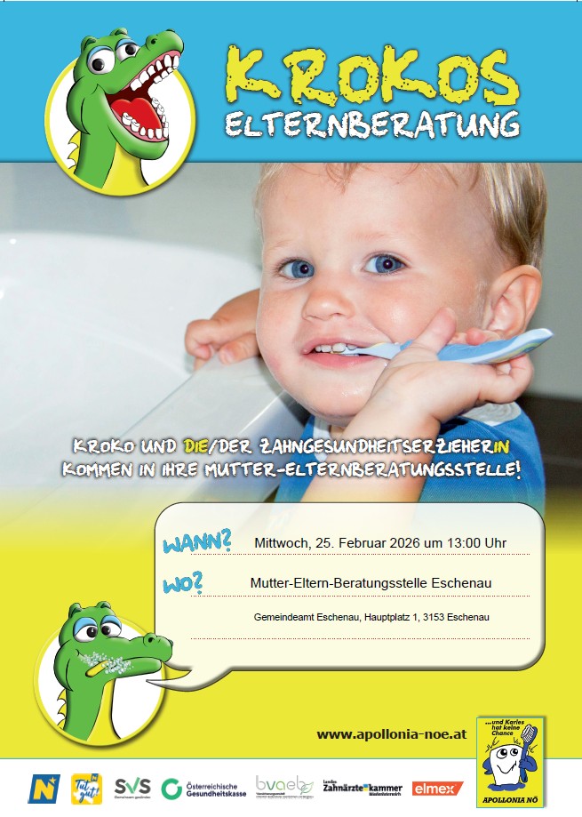 https://eschenau.at/wp-content/uploads/2016/08/Logo-Eschenau.png 0 0 Brigitte Gruber https://eschenau.at/wp-content/uploads/2016/08/Logo-Eschenau.png Brigitte Gruber2026-01-14 11:24:452026-01-14 11:42:51Zahngesundheitserzieherin kommt in die Elternberatungsstelle
