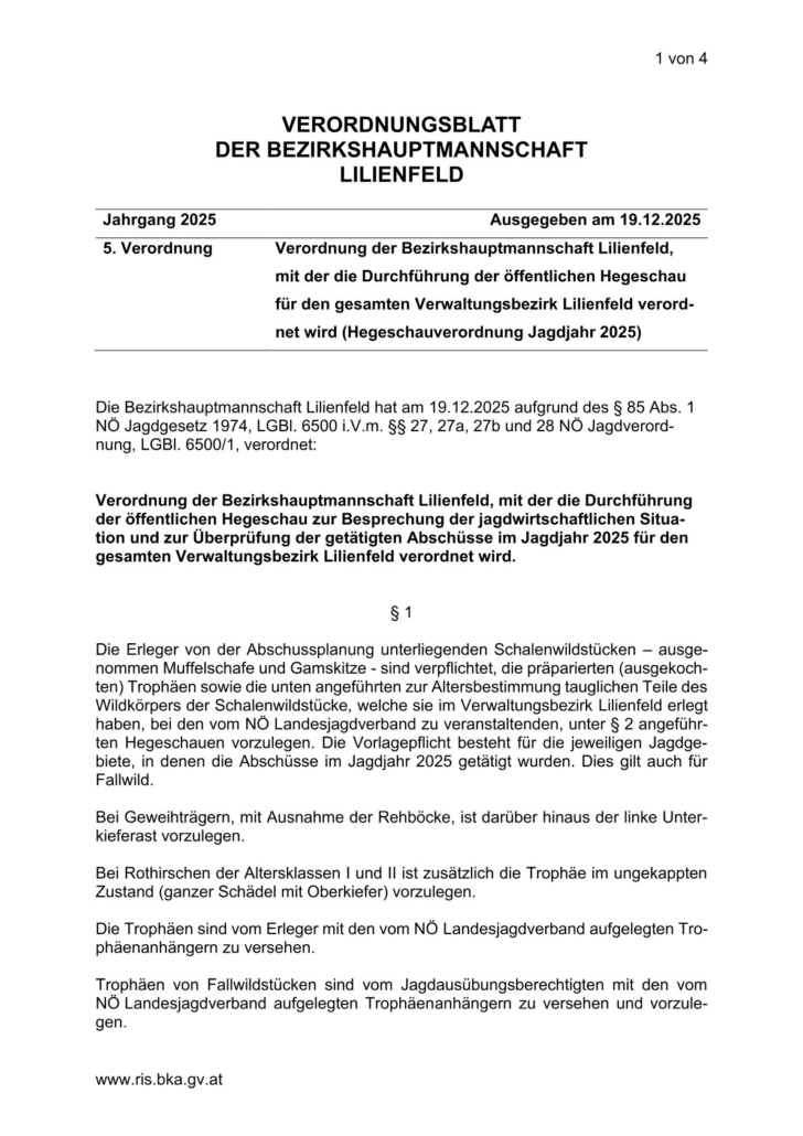 Du bist hier: Startseite1 / Amtstafel2 / Hegeschauverordnung Jagdjahr 2025