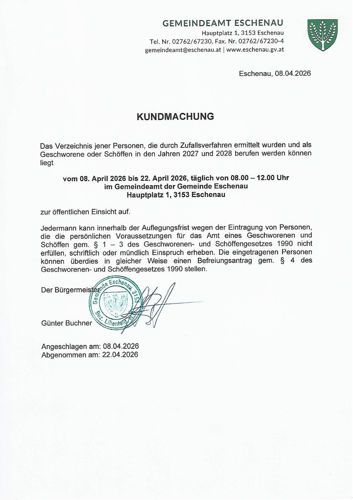 E-mail: gemeindeamt@eschenau.at Webseite: www.eschenau.gv.at