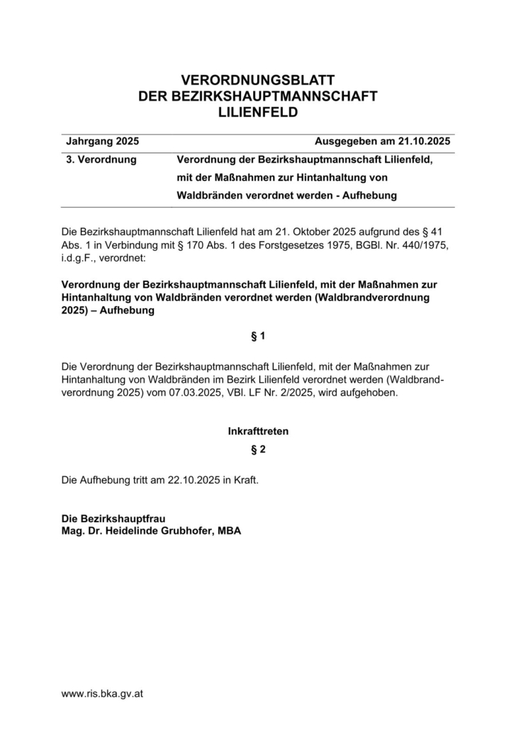 • Aufhebung Waldbrandverordnung